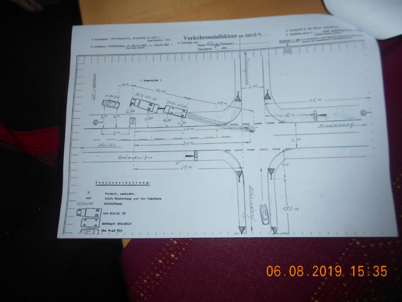 Ich wurde von den Anwohnern gerufen. Die erzählten uns, dass sich ein schwerer Unfall zugetragen habe. Das kannten wir eigentlich schon – von der Kreuzung her. Da gab es schon vorher etliche schwere Unfälle. – Es war damals ein heißer Tag. Wir wurden gerufen, und wir sind dann hingefahren, ein Kollege und ich. Wir fanden das Unfallwrack dann so vor, wie es später in den Zeitschriften und Zeitungen beschrieben wurde.