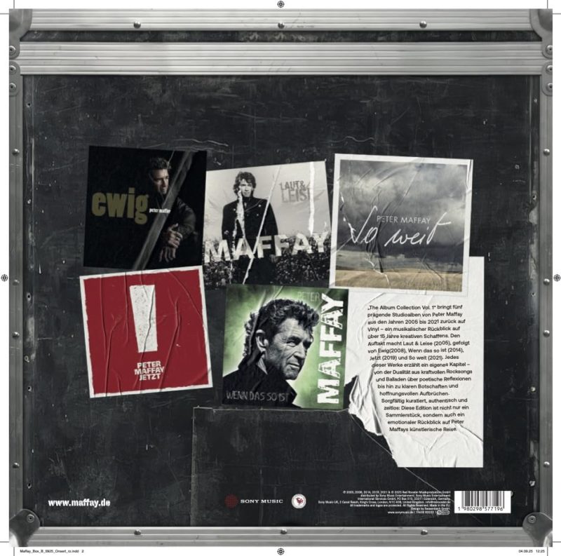 Mit „The Album Collection Vol. 1“ erscheint eine exklusive Vinyl-Box, die fünf prägende Studioalben von PETER MAFFAY aus den Jahren 2005 bis 2021 vereint – ein musikalischer Rückblick auf über 15 Jahre kreativen Schaffens.