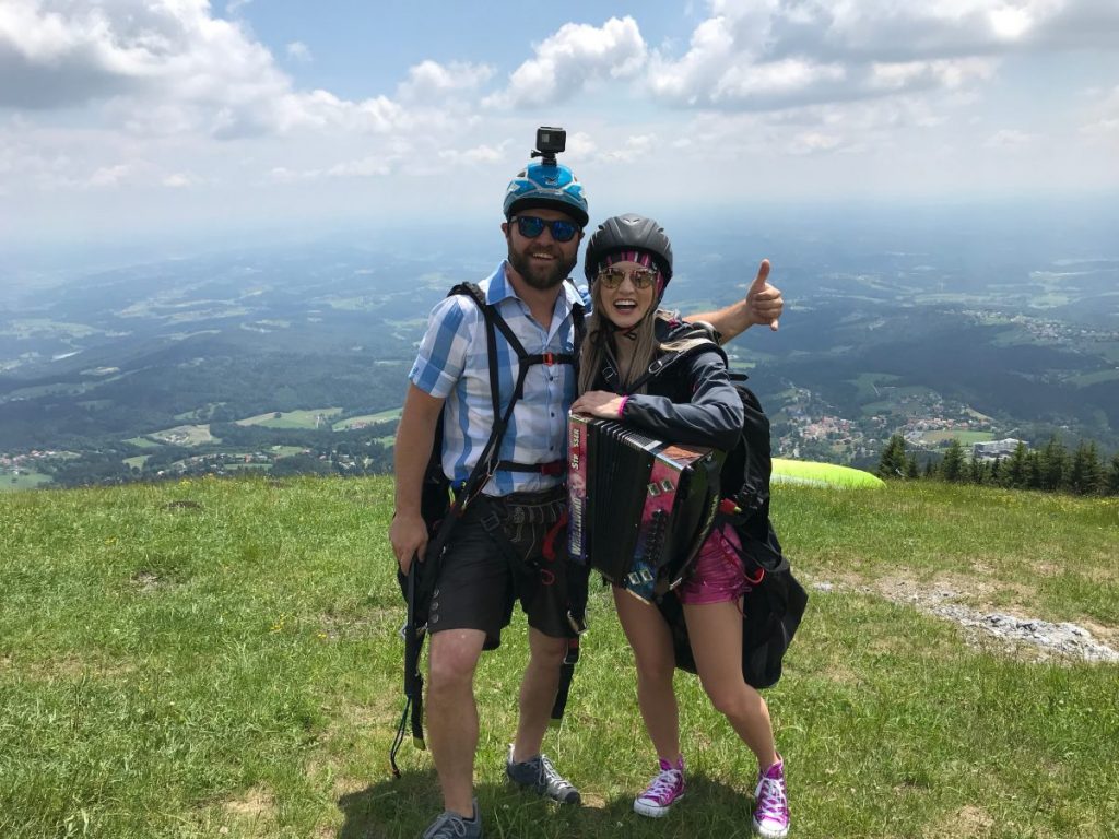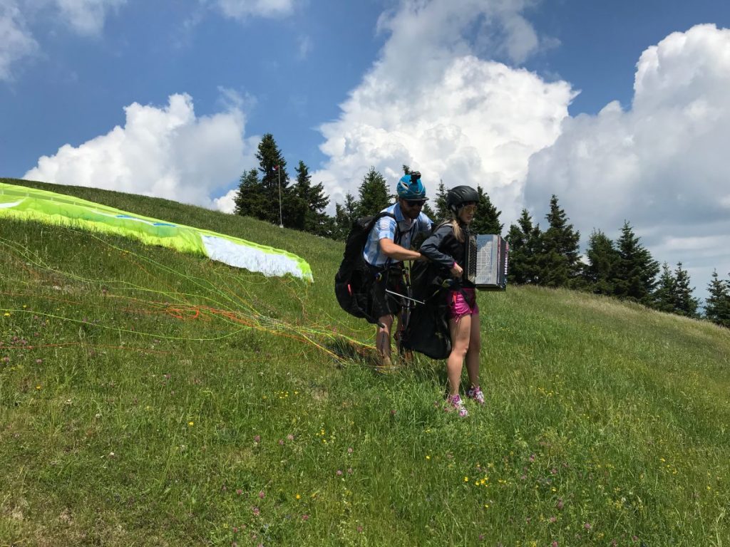 Das Besondere daran? Melissa wäre nicht Melissa, wenn die Musik fehlen würde… und so wurde kurzerhand auch die Harmonika mit hinaufgeschnallt und natürlich „I steh auf Bergbauernbuam“ (fast) über den Wolken angestimmt. Nach bravouröser Landung merkte die Lesachtalerin noch lachend an: „Gott sei Dank hab i da obn musizieren und singen können… des hat mi definitv abgelenkt, sonst hätt i des glaub i net ausghalten.“