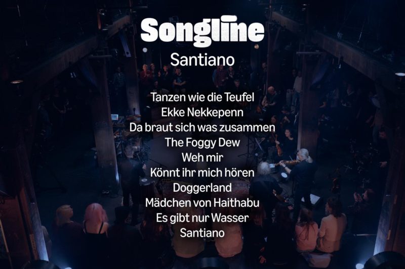 Das exklusive Songline-Album präsentiert zehn Studio-Performances von Santiano-Songs, viele davon von ihrem aktuellen Album „Da braut sich was zusammen“ (2025), ergänzt durch ausgewählte Titel aus „Doggerland“(2023), „Haithabu – Im Auge des Sturms“ (2018), „Von Liebe, Tod und Freiheit“ (2015) und „Bis ans Ende der Welt“(2012). Alle Songs, darunter „Es gibt nur Wasser“ und „Tanzen wie die Teufel“, wurden speziell für Songline live aufgenommen, einige Stücke zudem mit Streicharrangements neu arrangiert. Die Aufnahmen eröffnen neue Dimensionen und Facetten von Santianos Musik: Storytelling, Energie und der unverwechselbare Mix aus Shanty, Irish Folk und Rock der Band werden auf frische Weise präsentiert und besonders intensiv erlebbar. Santiano über ihre Teilnahme an Songline: „Wir freuen uns, als erste deutsche Band Teil der internationalen Songline-Serie von Amazon Music zu sein. Die Aufnahmen haben unfassbar viel Spaß gemacht. Das hört man den Songs hoffentlich auch an! Für einige der neuen Arrangements sind wir etwas sanfter als sonst vorgegangen, damit die Streicherinnen und Streicher einen besonderen Platz bekommen. Hört auf jeden Fall rein, es gibt einiges zu entdecken, was ihr so noch nicht gehört habt. Und natürlich: Verpasst nicht den Film am 13. März auf unserem YouTube-Kanal! Wir hoffen, ihr habt genauso viel Freude wie wir.”