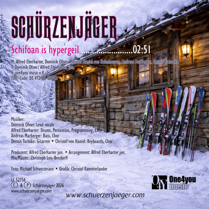 „Schifoan is hypergeil“ von den SCHÜRZENJÄGERn is a richtige Après-Ski-Gaudi-Nummer – mit Mitmach-Rhythmus, viel Schmäh und der typischen Tiroler Party-Stimmung. Im Song geht’s drum, wie leiwand Schifoan is – Schnee, Hüttn, Spaß und a gscheide Portion Lebensfreude. Perfekt zum Mitsingen, Mitklatschen und für jede Feier, wo’s einfach laut, lustig und gmiatlich sein soll.