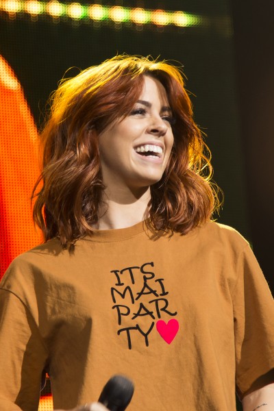 Zunächst einmal ist es begrüßenswert, dass Vanessa Mai ihren fragwürdigen Naomi Campbell-Look wieder abgelegt hat und jetzt wieder so aussieht wie Vanessa Mai. Auch trug sie ein äußerst witziges T-Shirt (zu ihrer langen schwarzen Lederhose) mit der Aufschrift "It's Mai Party".