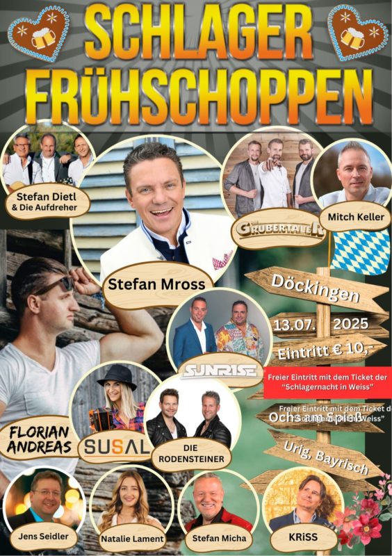 Der Clou: Am Sonntag, den 13.07.2025 findet auf dem Stadelmann Eventpark Döckingen Gelände der legendäre „Schlager Frühschoppen“ mit vielen weiteren Stars statt.