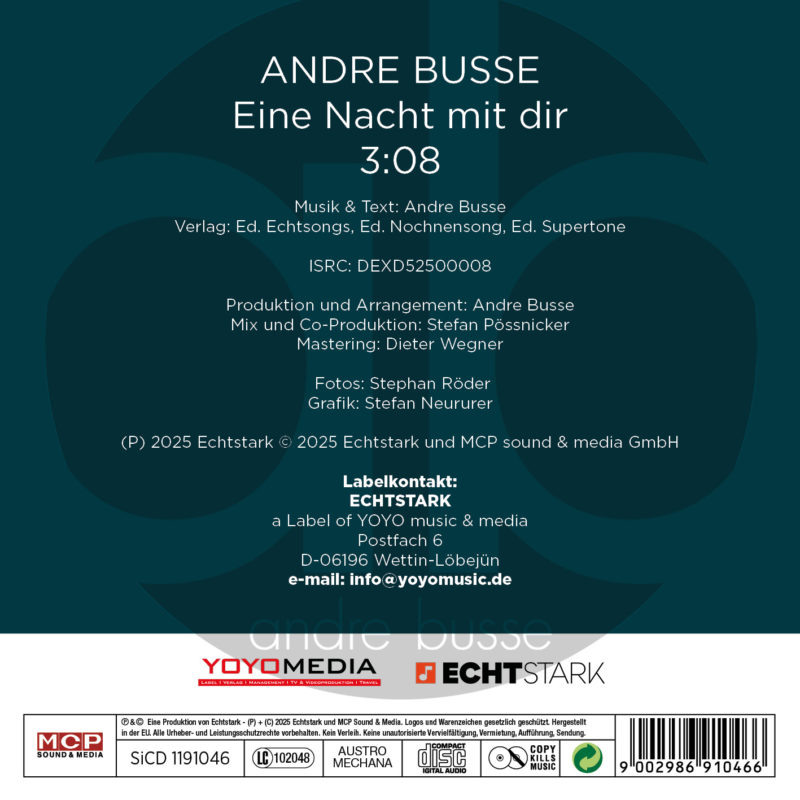 Mit „Eine Nacht mit dir“ beweist Andre Busse einmal mehr sein Gespür für große Gefühle und mitreißende Hooks.