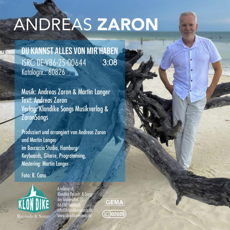 Nach einer längeren Pause, in der sein Schwerpunkt eher in der schauspielerischen Tätigkeit lag, ist Andreas Zaron seit über vier Jahren wieder fester Bestandteil der Schlagerszene und stürmt mit seinen Veröffentlichungen regelmäßig die Airplaycharts. Nach seinen letzten Erfolgen wie „Liebespetition“, „Hallo Welt“ oder dem augenzwinkernden „Liebe XXL Re:Loaded“ legt er nun mit „Du kannst alles von mir haben“ nach – und nimmt erneut Kurs auf die Herzen des Publikums.