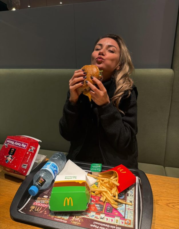 … und Anna-Carina …? „Nach diesem ereignisreichen Wochenende hatte ich richtig Lust auf einen Burger mit Pommes – und ich denke, den hab ich mir heute wirklich verdient! 😄🍔“, schrieb sie am 16.11.2025 auf ihrer Facebook-Seite. („Ich wünsche Euch allen einen schönen Sonntagabend!“)