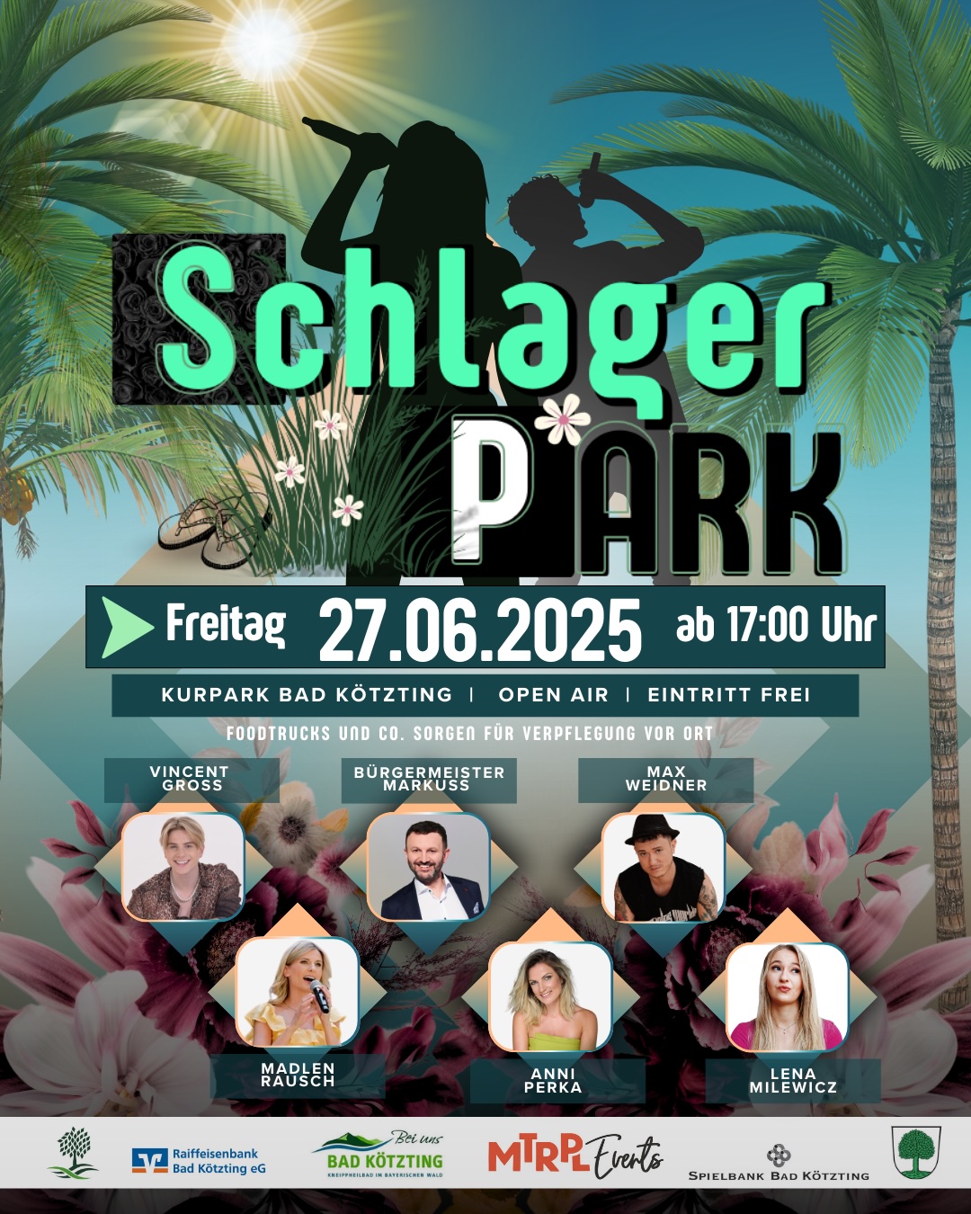 Bad Kötzting, 18. Juni 2025 – Eine Premiere, die Schlagerherzen höherschlagen lässt: Am 27. Juni 2025 verwandelt sich der idyllische Kurpark von Bad Kötzting erstmals in einen Schlagerpark – ein Event, das hochkarätige Acts, beste Stimmung und ein ganz besonderes Ambiente verspricht. Hinter der Idee steht niemand Geringeres als Bürgermeister Markus Hofmann (= Bürgermeister MarKuss) – nicht nur bekennender Schlager-Fan, sondern auch selbst als Sänger regelmäßig auf der Bühne.