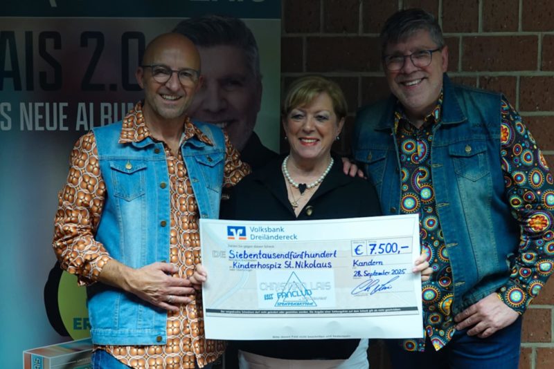Bereits seit 2016 engagiert sich CHRISTIAN LAIS für das Kinderhospiz St. Nikolaus im Allgäu. € 22.500 konnte er bereits sammeln. Bei seinem Fanclub-Treffen am 28.09.2025 in Bad Bellingen konnte er Marlies Breher einen weiteren Scheck in Höhe von € 7.500 überreichen. Somit liegt die aktuelle Spendensumme bereits bei € 29.000.