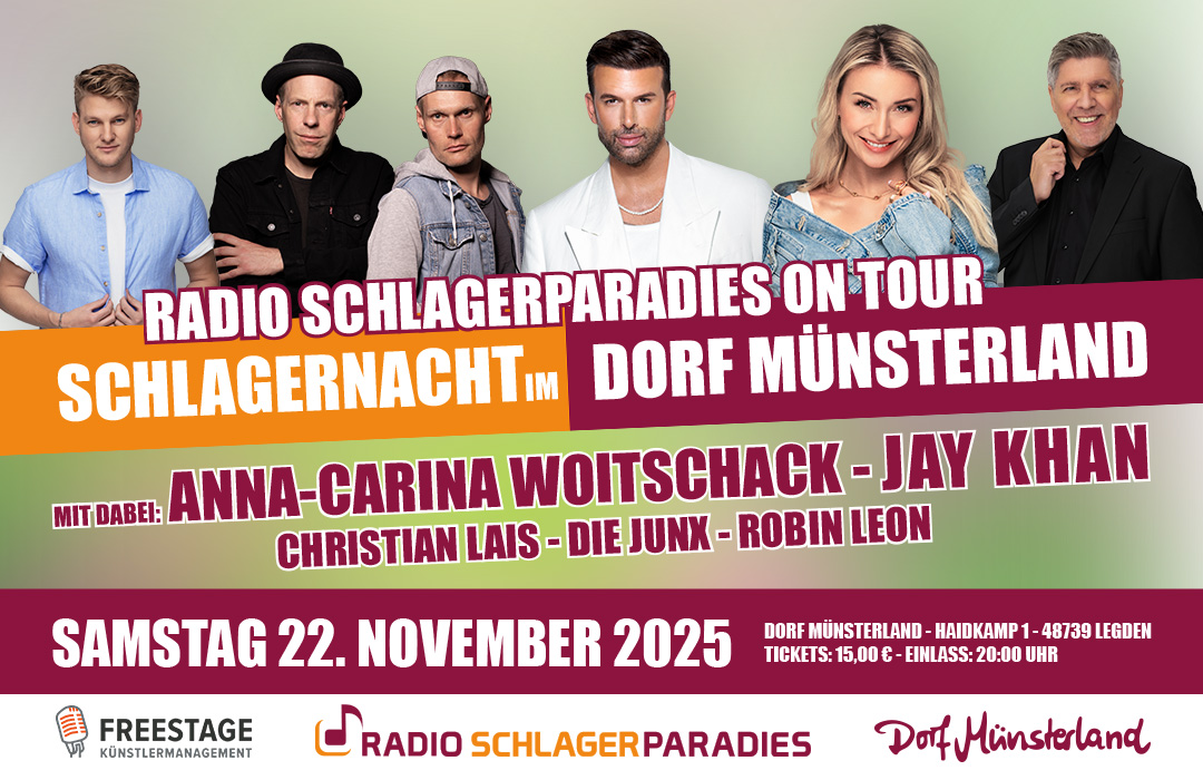 Riesengroßer Erfolg für die „‚Radio Schlagerparadies on Tour‘ Schlagernacht im Dorf Münsterland“ am 22.11.2025!