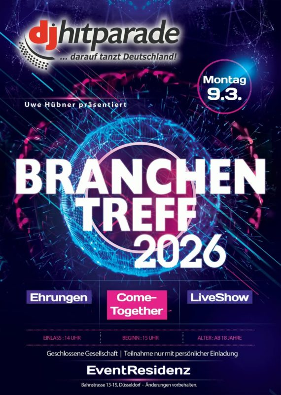 Dieses Treffen ist ein großes Dankeschön der Teamleitung, also von Uwe Hübner, Frank Jarosch und Tobias Massin, an die Kunden der dj-hitparade. Denn diese haben im vergangenen Jahr dafür gesorgt, dass die dj-hitparade die klare Nummer 1 im Bereich Promotion für tanzbaren deutschen Schlager geblieben ist – ja, ihre ohnehin starke Position sogar noch weiter ausgebaut hat.