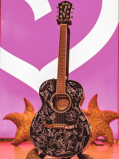 Diese A(u)ktion liegt dem Team von BR Schlager und vielen Künstlerinnen und Künstlern sehr am Herzen. 40 Stars haben sich auf der Gitarre verewigt, der Erlös geht an die Benefiz-Aktion „Sternstunden“. Mit der Hilfsaktion für Sternstunden werden kranke, behinderte oder in Not geratene Kinder auf der ganzen Welt unterstützt. Die Spendengelder kommen zu 100% ohne Abzüge Hilfsprojekten zu Gute.