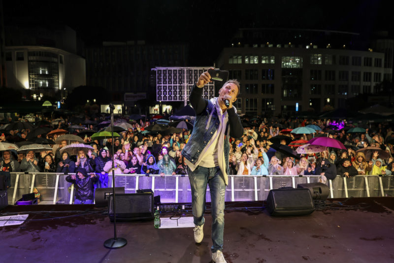 Als Jörg Bausch schließlich die Bühne betrat, war der Platz wieder voll. Die Energie in der Luft war greifbar. Was folgte, war ein Konzert, das niemand so schnell vergessen wird: eine emotionale, kraftvolle Show – mitten im Regen. Die Fans sangen lauthals mit, tanzten im Wasser, feierten jedes Lied. Und selbst nach der letzten Zugabe blieben viele noch lange – um Autogramme zu bekommen, Fotos zu machen, einfach um den Moment festzuhalten.
