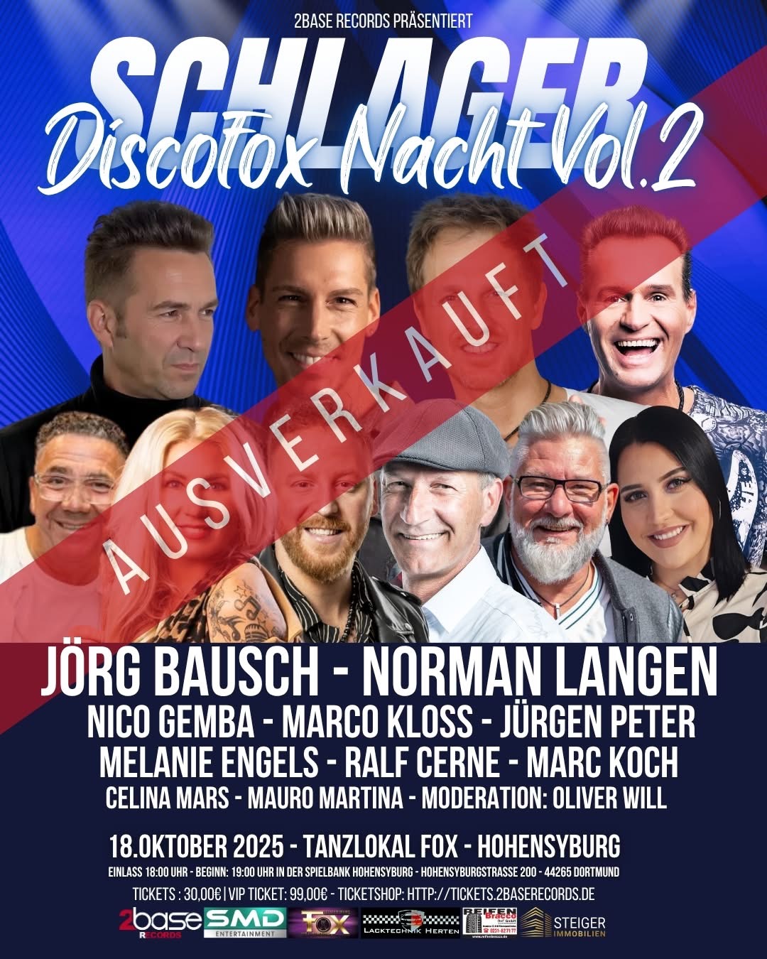 Die zweite Schlager- & Discofox Nacht am 18.10.2025 im Tanzlokal FOX in Dortmund ist RESTLOS AUSVERKAUFT !!!