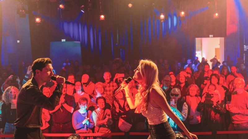 Den Titel „Shadow“ von Bradley Cooper & Lady Gaga sangen Laura & Mark auf Englisch (sie) und auf Deutsch (er). Mit „You’re The One That I Want“ folgte DER Hit aus dem Musikfilm „Grease“. Mit „Country Roads“ und „Proud Mary“ (Tina Turner) und „Marmor, Stein und Eisen bricht“ (A cappella vorgetragen) und dem Hinweis (von Laura) in Richtung BR Schlager „Ihr wart das erste Radio, das wir besucht haben“) verabschiedeten sich Laura & Mark, die im Übrigen Lauras Schwester Amber van den Elzen mit im Schlepptau hatten, von der Bühne.