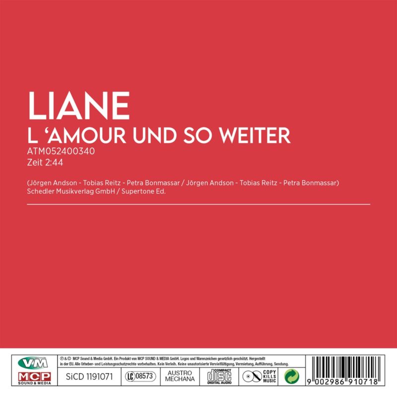 Mit ihrer brandneuen Single „L’amour und so weiter“ meldet sich LIANE, der Sonnenschein des deutschen Schlagers, zurück – und das mit einem Song voller Gefühl, Charme und moderner Leichtigkeit. In „L’amour und so weiter“ geht es nicht nur um eine flüchtige Begegnung oder eine einzige Nacht, sondern um die Sehnsucht nach vielen, vielen gemeinsamen Nächten voller „L‘amour und so weiter“. Ein moderner, tanzbarer Song voll mit Emotionen und einem Hauch französischen Flairs.