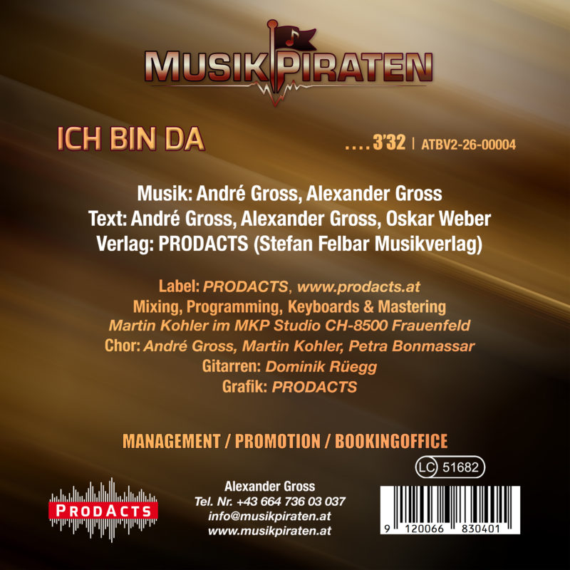 Mit „Ich bin da“ präsentieren die MusikPiraten einen weiteren emotionalen Schlager, der durch Ehrlichkeit und Nähe überzeugt. Der Titel erzählt vom Gefühl des Ankommens, von Verlässlichkeit und dem klaren Versprechen, füreinander da zu sein – direkt, verständlich und mit spürbarer Intensität.