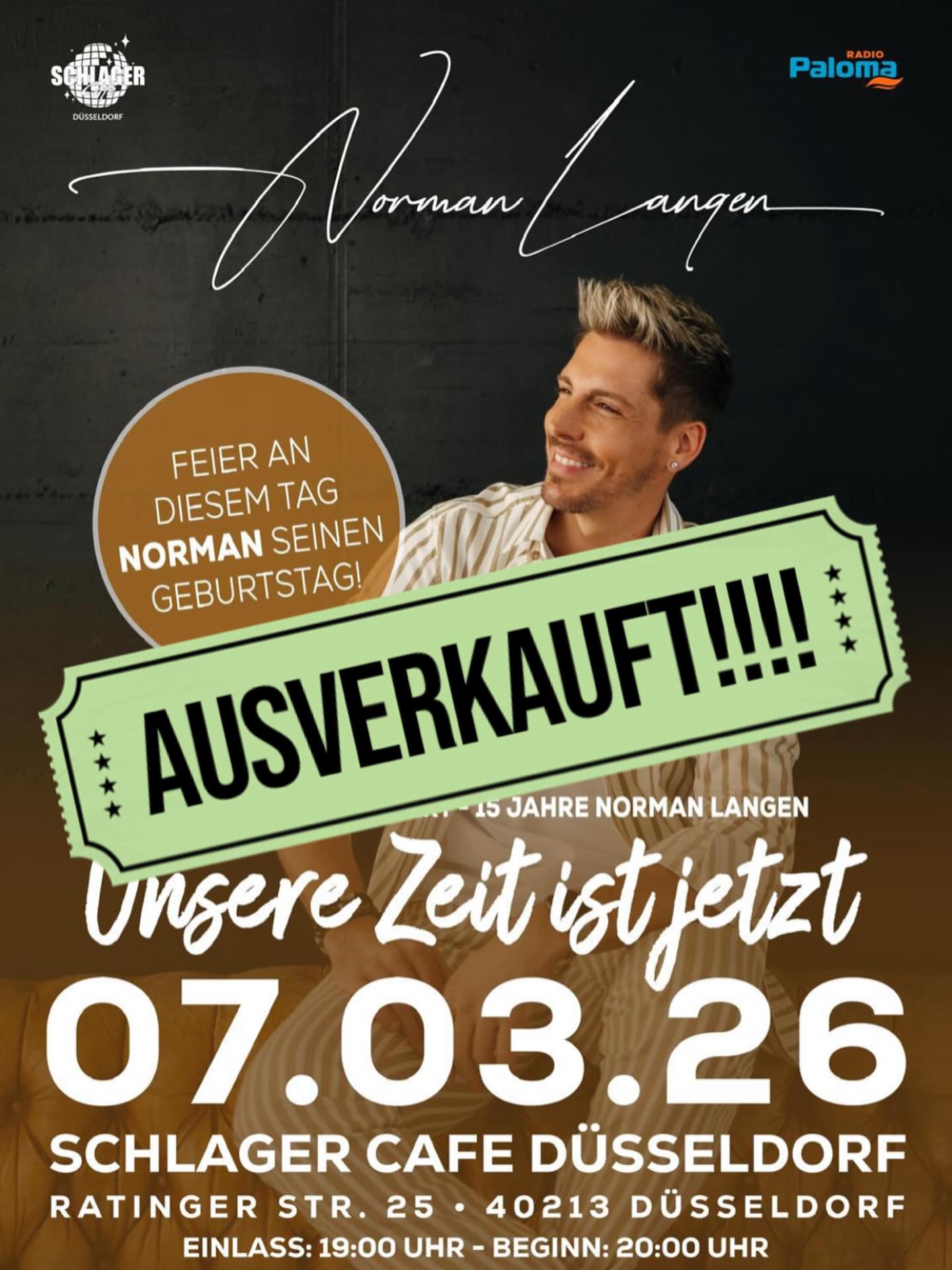 Wir sind am Samstag AUSVERKAUFT und feiern mit über 1.000 Leuten mein 15- jähriges Jubiläum.
