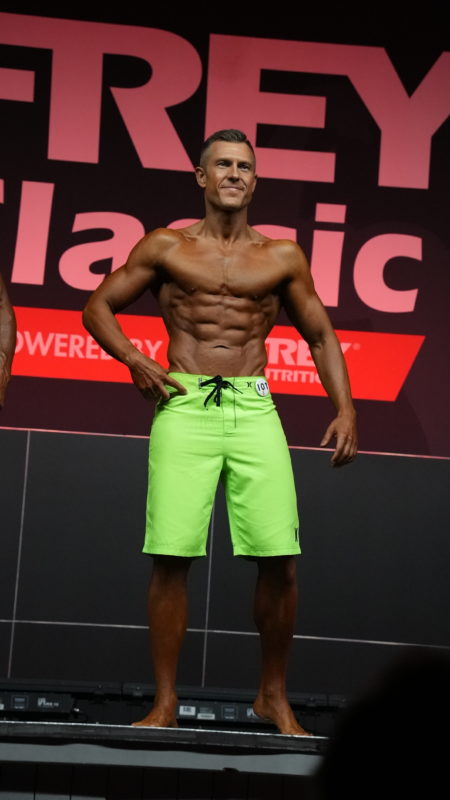 Mit einer beeindruckenden Form und maximaler Bühnenpräsenz sicherte sich Patrick Himmel den Sieg in der Klasse Men’s Physique +40 beim renommierten Masters der Frey Classic.