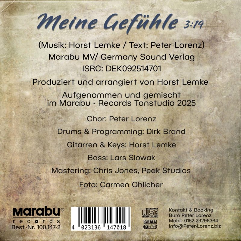 Sein neuer Titel „Meine Gefühle“ wurde mit Top-Studiomusikern im Marabu- Records Tonstudio aufgenommen. Für die Produktion und das Arrangement zeigt sich Horst Lemke verantwortlich.