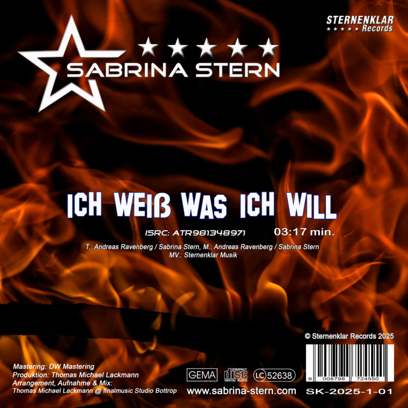 SABRINA STERN ist bekannt für ihren starken Charakter, ihre klare Haltung und ihre unerschütterliche Lebensfreude – und genau das spiegelt sich in ihrer neuen Single „Ich weiß, was ich will“ wider. Der Titel ist kein lauter Partyschlager, sondern ein gefühlvoller, moderner Pop-Schlager mit Tiefgang und sanftem Flow. Ein Song, der nicht nur tanzbar ist, sondern auch berührt.