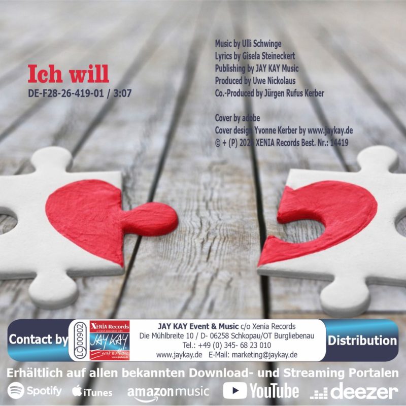 „Ich will“ ist vielleicht der idealste Antragssong für zwei sich ewig bindende Menschen. Beginnend mit der Angst des Herzensverlust und dem sich dann Stück für Stück verschmelzenden ewigen WIR, dem Happy End zwei sich Liebenden. Ja, die Welt hält dann auch mal still und schickt das Lied „Ich will“ von Ulli Schwing … Also: Mut zum „Ich will“, denn die Liebe kennt definitiv keine Grenzen und Vorbehalte, ob in Liedern, Filmen oder im ganz realen Leben.