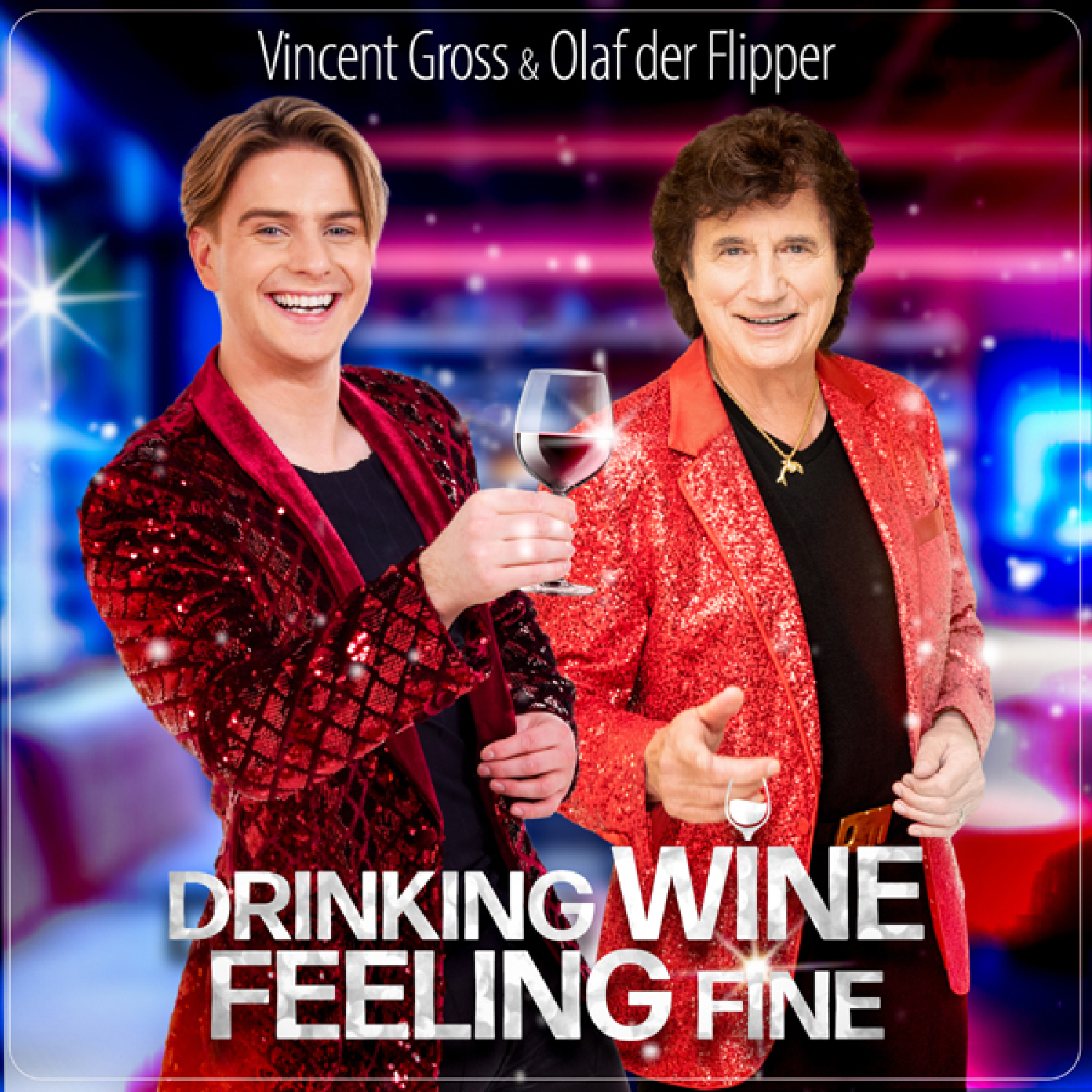 Olaf und ich hatten unabhängig voneinander letzten Sommer beim „ZDF-Fernsehgarten“ einen Auftritt, und da ist er dann zu mir gekommen und meinte so, ja Vincent, dein „Ouzo“, der ist Weltklasse. Wenn du mal einen Song für mich hast, dann gib gern Bescheid. Und so was merke ich mir. Und dann habe ich zurücküberlegt: Was ist das Lieblingsgetränk von Olaf? Wir haben ja oft gemeinsam Auftritte, und man trifft sich immer noch in der Hotelbar. Und dann habe ich mir gedacht, ja, Olaf hat immer ein Gläschen Wein mit zum Anstoßen, und irgendwann bin ich auf Instagram über ein Posting gestoßen, wo die Caption dann war, „Drinking Wine – Feeling Fine“. Und so war die Idee geboren. Und der Rest ist Geschichte. Ich habe Olaf den Song vorgespielt und er meinte direkt, „machen wir“ und – hier sind wir.