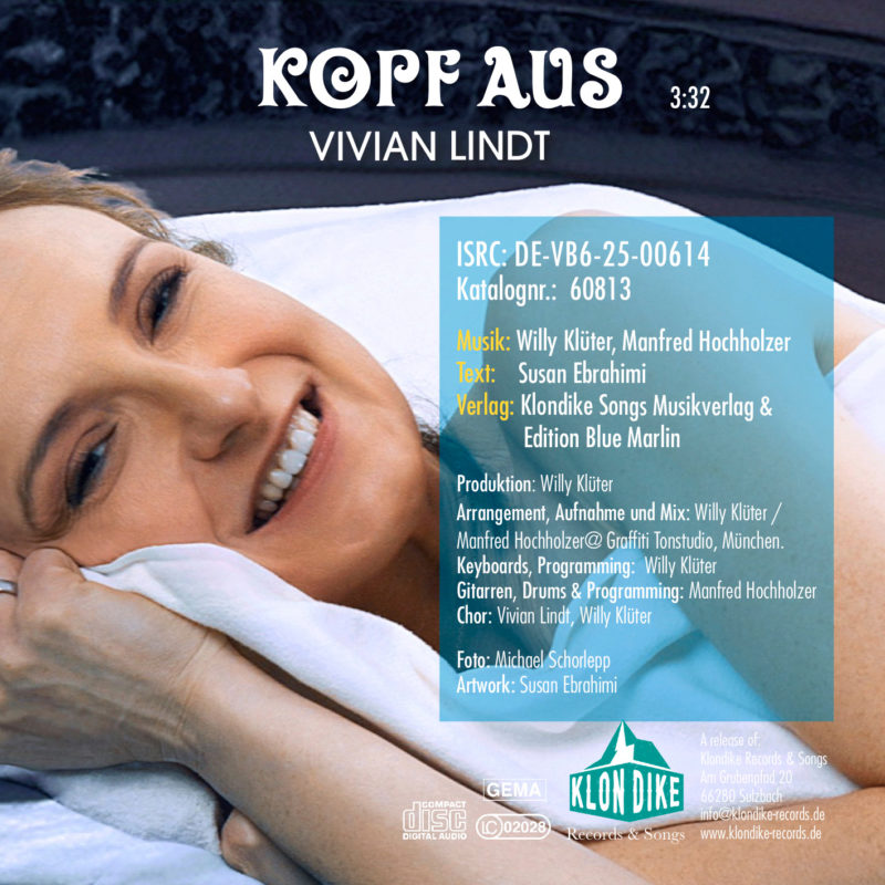 Mit „Kopf aus“ gelingt VIVIAN LINDT ein zeitgemäßer, emotionaler Schlager, der zum Innehalten einlädt, insbesondere aber Leichtigkeit schenkt. Eine Hymne an den Augenblick – gefühlvoll, ehrlich und musikalisch auf einem Top-Niveau, wie wir es von VIVIAN seit vielen Jahren kennen!