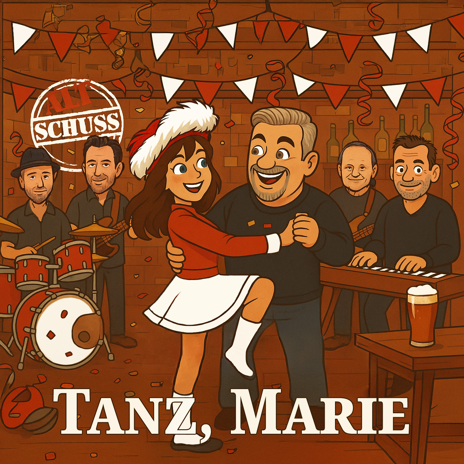 Mit ihrem neuen Sessionstitel „Tanz, Marie“ liefet die Düsseldorfer Kult-Band ALT SCHUSS pünktlich zur fünften Jahreszeit den nächsten Stimmungsgaranten für alle Karnevals- und Partyfreunde.