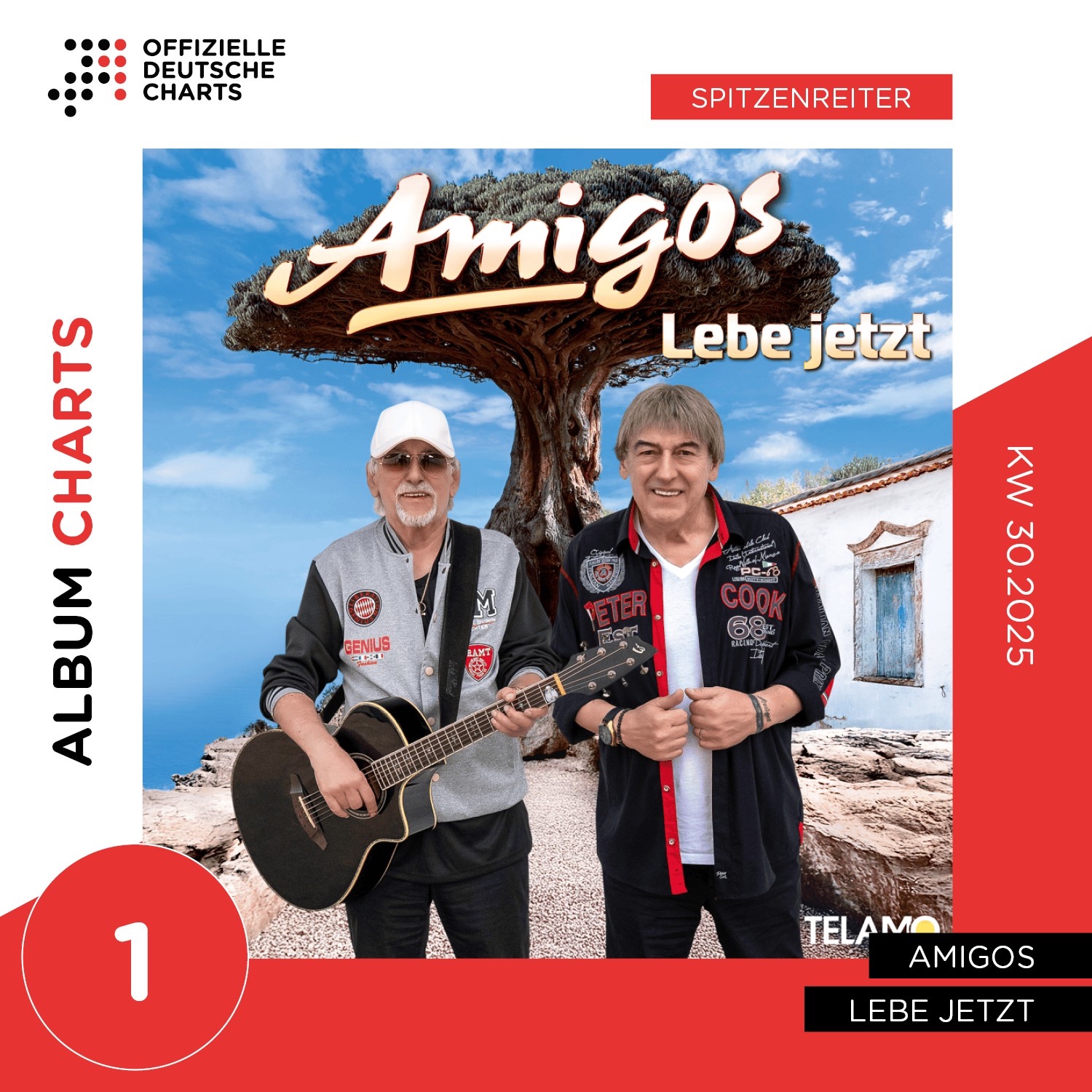 „Lebe jetzt“ ist der Titel des neuen Albums der Amigos, das auf Platz 1 der Offiziellen Deutschen Album Charts eingestiegen ist. Es ist sage und schreibe das siebzehnte Mal, das die beiden Brüder Karl-Heinz und Bernd Ulrich mit einem Album von der Pole Position aus starten. „Lebe jetzt“ ist das mittlerweile sechste Album, das die Amigos in ihrer legendären Erfolgsgeschichte zusammen mit der Münchener Tonträgerfirma TELAMO veröffentlichen.