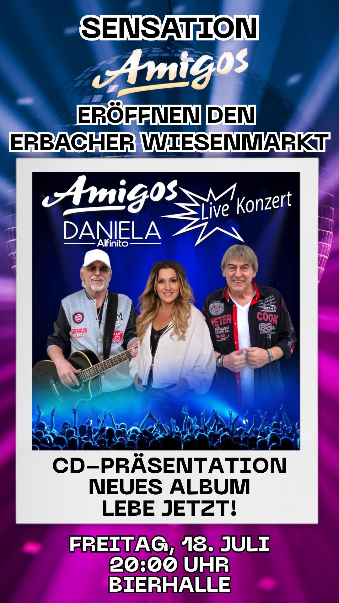 Die Amigos eröffnen am 18.07.2025 den Erbacher Wiesenmarkt – inkl. CD-Präsentation „Lebe jetzt“!