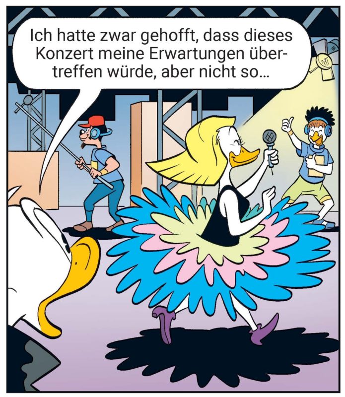 Natürlich darf Donald Duck bei der großen Schlagerparty nicht fehlen. Mit einer selbst komponierten Ballade will er Daisys Herz erobern. Ob sein Gesangstalent auch für die große Showbühne reicht, bleibt fraglich. Auch sein Gitarrensolo sorgt eher für Ohrenschmerzen und nicht für Applaus. Vielleicht überlässt unser Lieblingspechvogel die Musik doch lieber den echten Schlagerstars …