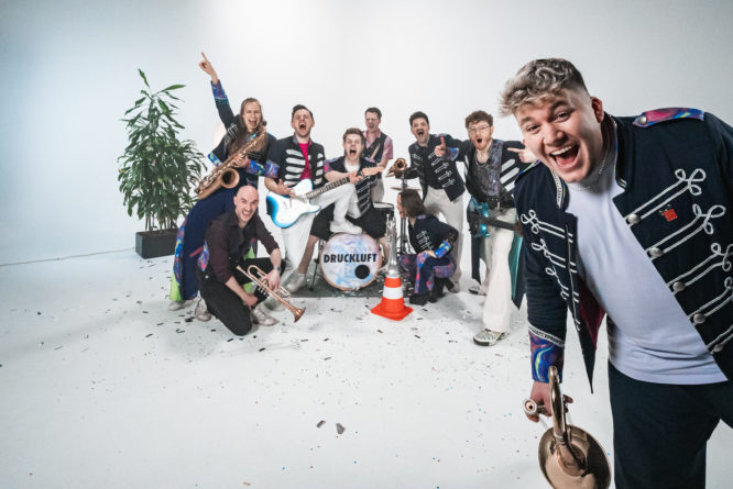 DRUCKLUFT ist eine Karnevals-Brass-Party-Pop-Band aus dem Raum Köln/Bonn und steht seit 16 Jahren für energiegeladene Live-Musik, gute Laune und große Bühnenmomente. Vom Wohnzimmerkonzert bis zur Lanxess-Arena, von viralen Social-Media-Formaten bis zu TV-Auftritten – die Band beweist immer wieder ihre Vielseitigkeit und ihre Liebe zum Detail. 2026 geht DRUCKLUFT auf große Festivalreise mit mehr als 20 Konzerten. Rund um die Karnevalszeit ist die Band im Jahr 2026 zudem mit über 150 Shows gebucht und zählt damit zu den meistgespielten Live-Acts der Session.