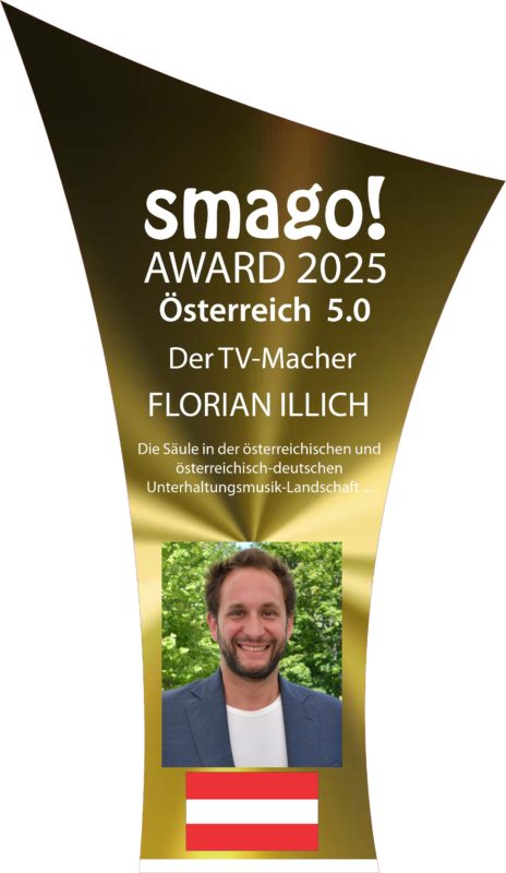 FLORIAN ILLICH wurde am Donnerstagabend (10.04.2025) beim smago! Award Österreich 5.0 in der Hohenhaus Tenne in Schladming als „Der TV-Macher“ ausgezeichnet.