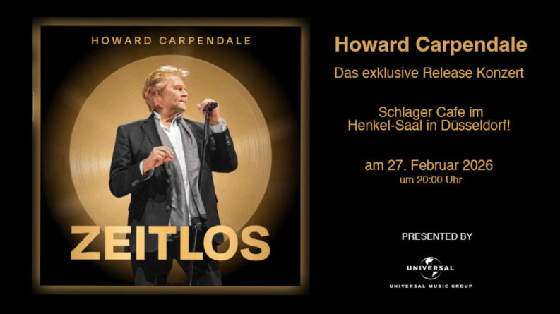 Am Freitagabend (27.02.2026) präsentierte HOWARD CARPENDALE, begleitet von einer Chorsängerin und zwei Chorsängern, einige Titel aus seinem aktuellen Nr. 1 Album „Zeitlos“. Die Veranstaltung fand im Henkelsaal des Schlager Cafés in Düsseldorf statt.