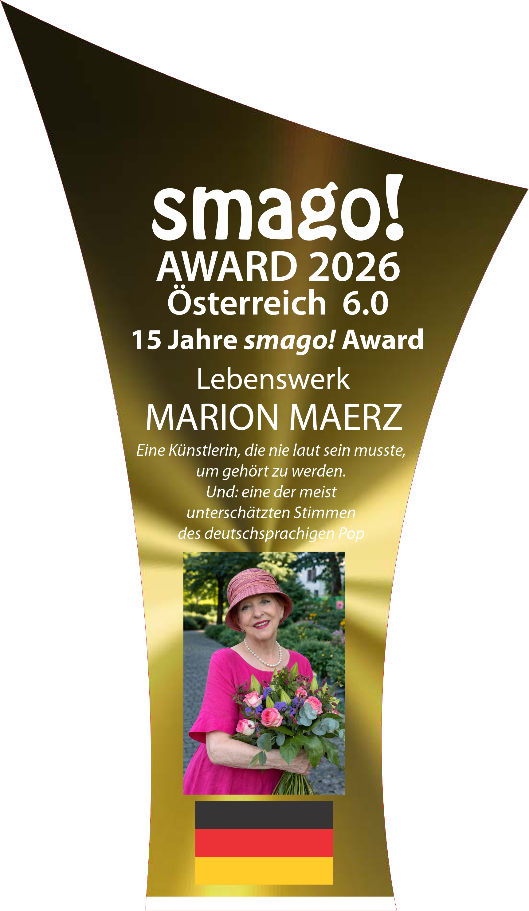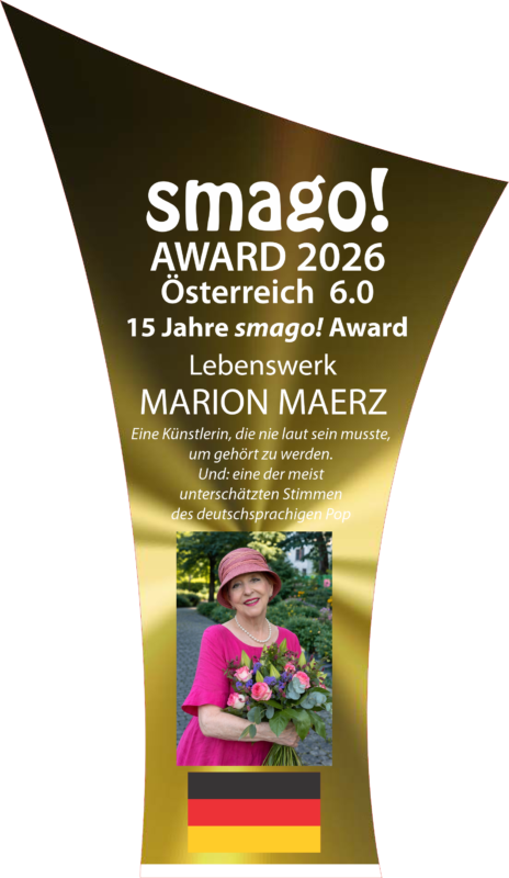Mit ihrer warmen, unverwechselbaren Stimme und einer Karriere über Jahrzehnte hinweg steht MARION MAERZ für ein stilles, aber beeindruckendes Lebenswerk. Und ganz genau DAFÜR wurde sie am 08.04.2026 beim smago! Award Österreich 6.0 – 15 Jahre smago! Award ausgezeichnet.