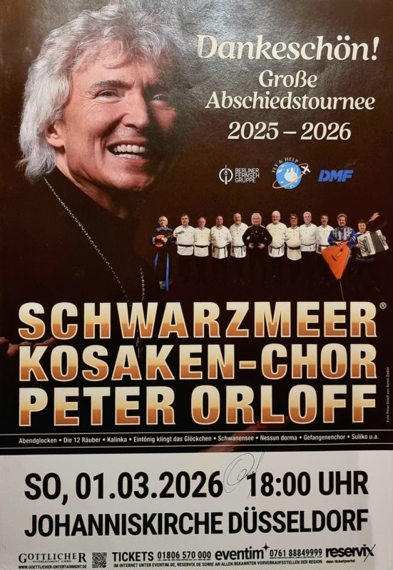 „Die Abschiedstournee“ von Peter Orloff und dem Schwarzmeer Kosaken-Chor machte am 01.03.2026 in Düsseldorf Station!