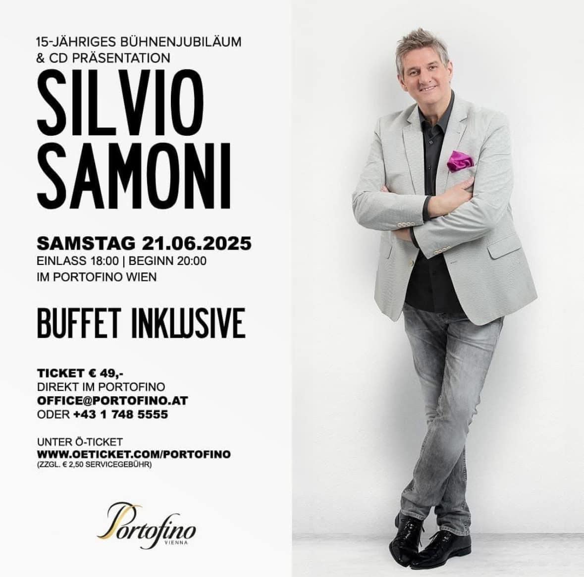 Am vergangenen Samstag (21.06.2025) ließ nicht nur Florian Silbereisen den Schlager boo(o)men und die Berge leuchten … SILVIO SAMONI feierte im nahezu restlos ausverkauften Portofino in Wien sein 15-jähriges Bühnenjubiläum und zugleich auch die CD-Taufe seines neuen Albums „Liberta“.