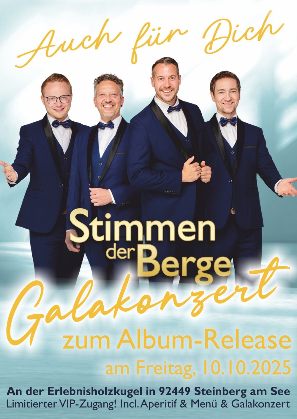 Großes Gala-Konzert zur VÖ des neuen Albums „Auch für Dich“ am 10.10.2025 bei der Erlebnisholzkugel in Steinbach am See!
