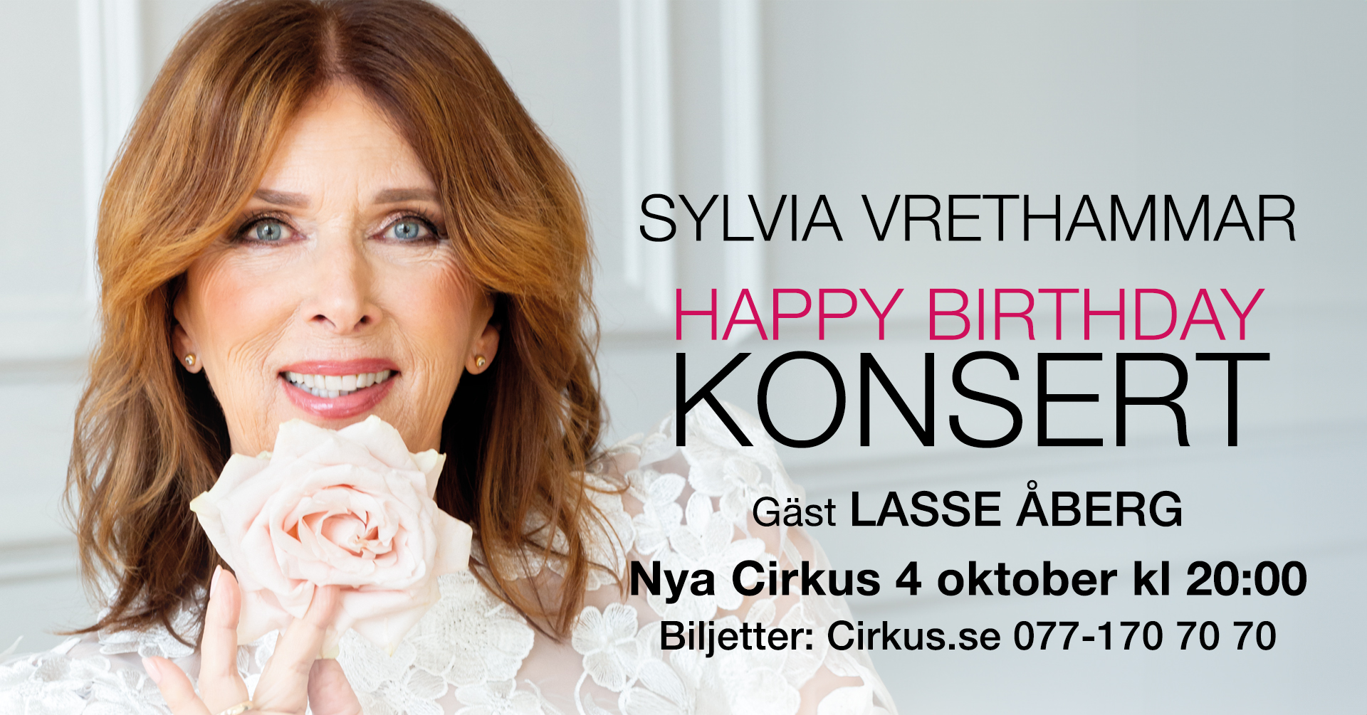 „Jetzt bringen wir den Zirkus für mein lang erwartetes Konzert „Happy Birthday“ am 4. Oktober 2025 ins Rollen“, schreibt SYLVIA VRETHAMMER auf ihrer Facebook-Seite. „Ursprünglich hatte ich geplant, meinen 80. Geburtstag im ‚Wunderland‘ zu feiern. Wir haben sicherlich Platz, aber im ‚Cirkus‘ kann ich SO viel mehr von euch erreichen, meine lieben, wichtigen Freunde. Ich freue mich darauf, Ihnen Magnus Lindgren, Simon Oslender, Bruno Müller, Jonas Bäckman und Niklas Fernqvist zu präsentieren.“