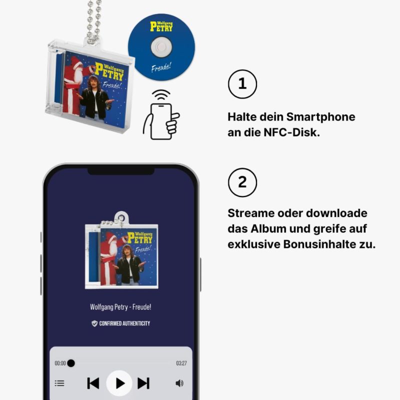 Was steckt dahinter? – Durch einfaches Scannen der NFC-Disc mit dem Smartphone öffnet sich die digitale Welt mit Inhalten, die das Album auf neue Weise erlebbar macht.