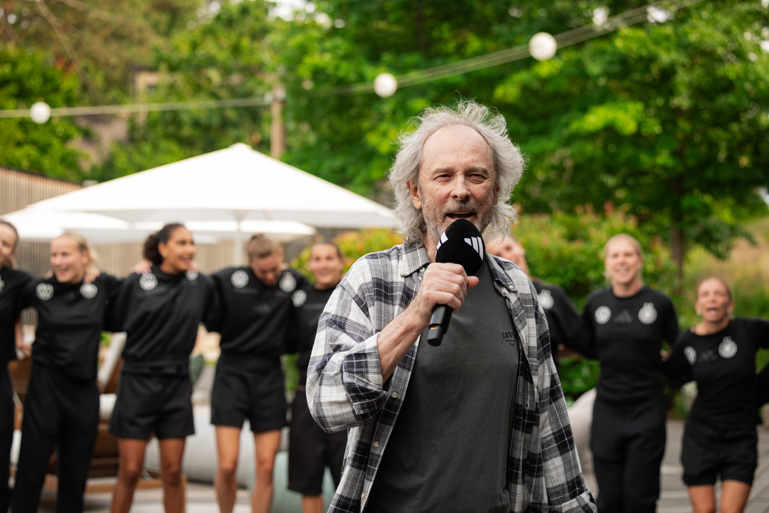 Es ist eine echte Sensation: Seit einer gefühlten Ewigkeit war Wolfgang Petry nicht mehr im Rampenlicht zu sehen – während eines spontanen Überraschungsbesuchs bei der DFB Frauen-Nationalmannschaft hat die Kölner Schlager-Ikone Ende Juni zum ersten Mal in über 26 Jahren erstmals wieder all seine liebgewonnen Megahits performt. So wie den erklärten Lieblingssong unserer Fußballdamen, bei denen Wolles „Verlieben, verloren, vergessen, verzeih`n“ zum unverzichtbaren Warm-Up-Ritual vor jedem Spiel und natürlich auch zum festen DJ-Set auf jeder Siegesfeier gehört.