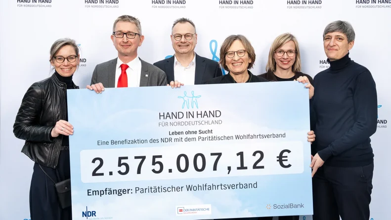 2.575.007,12 Euro: Das ist das Spendenergebnis der diesjährigen NDR Benefizaktion „Hand in Hand für Norddeutschland – Leben ohne Sucht“. Mit dem Geld werden die Suchthilfe-Projekte des Partners der Aktion unterstützt: Der Paritätische Wohlfahrtsverband und seine 2.000 Mitgliedsorganisationen im Norden.