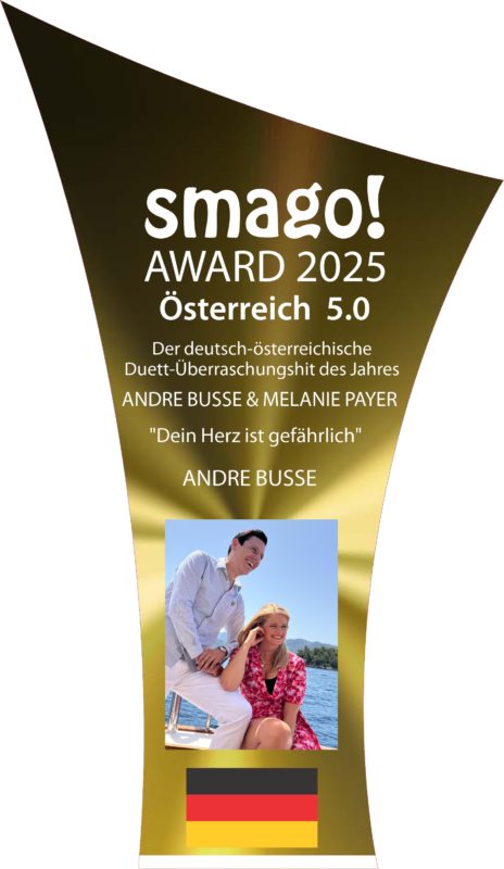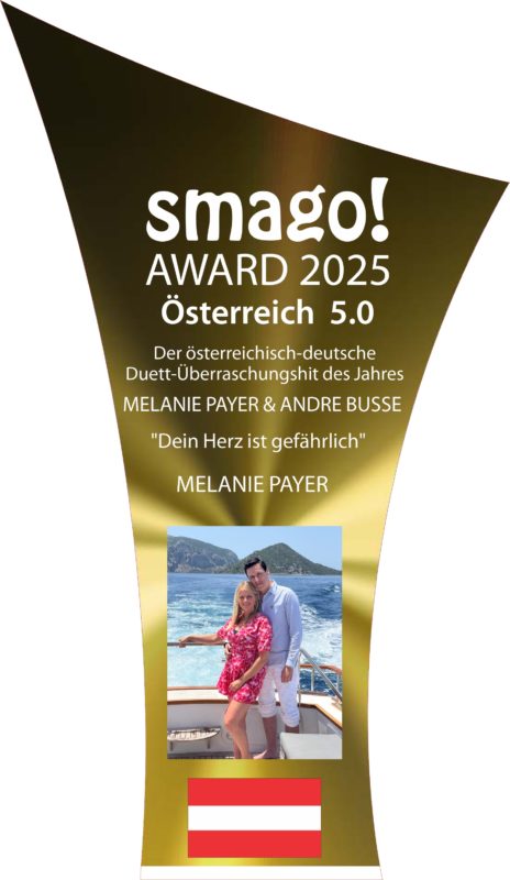 „Zum wiederholten Male wurde Melanie Payer beim smago! Award 2025 (Österreich 5.0) ausgezeichnet, für Andre Busse ist es der erste smago! Award. Den Award gab es für ‚Dein Herz ist gefährlich‘ für den ‚Österreichisch-Deutschen Duett-Überraschungshit des Jahres 2024‘.